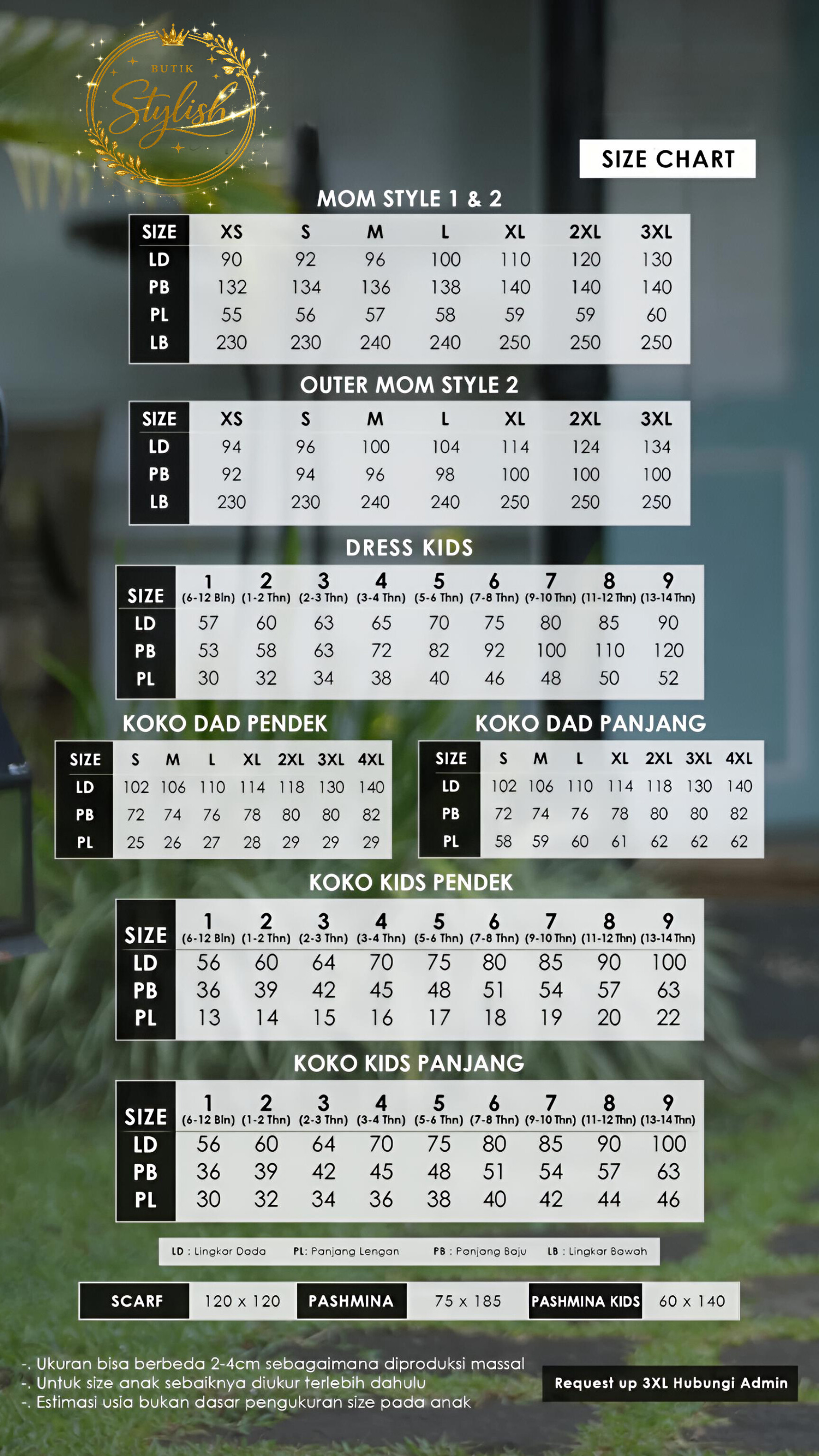 - size ( lihat table size chart )